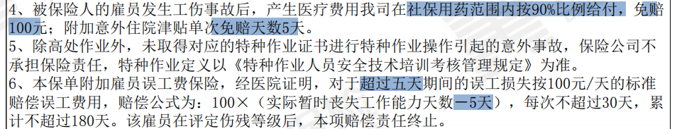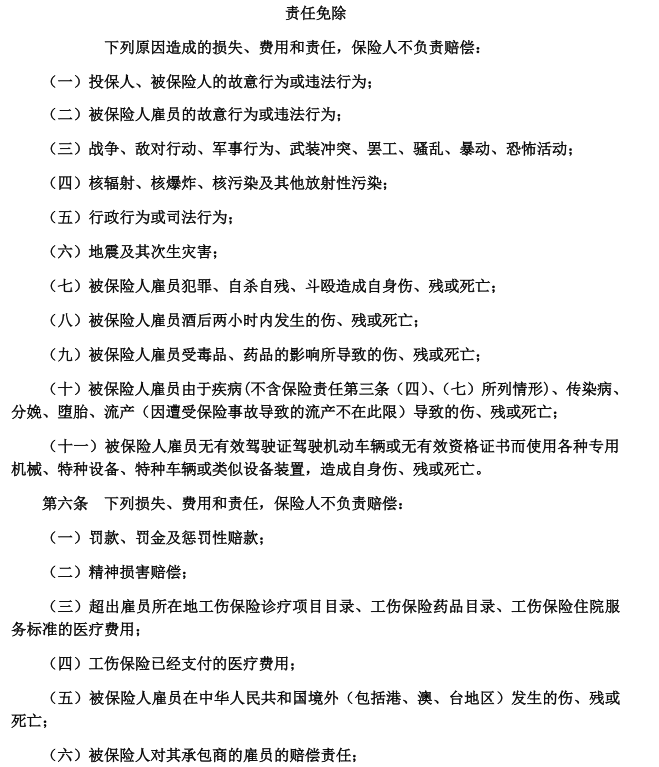 加粗的免责条款是拒赔红线,雇主险需关注: